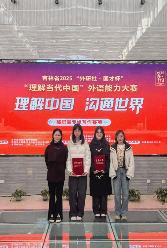 2025 年吉林省高职高专“外研社・国才杯”“理解当代中国” 外语能力大赛落下帷幕。我校学子在英语演讲、写作和短视频三个赛项中奋勇拼搏,凭借扎实的外语功底与出色的综合素养,斩获金奖 3 项、银奖 4 项、铜奖 1 项,在全省高职高专院校中展现出强劲的外语实力与育人成效。
