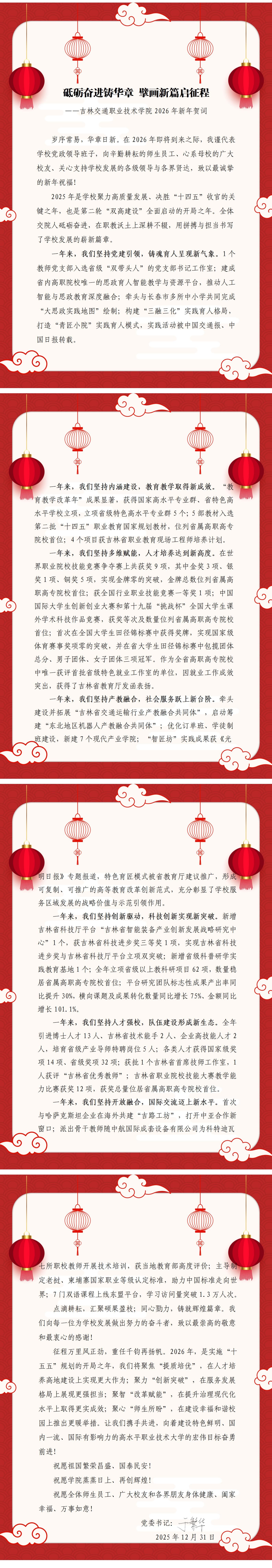 砥砺奋进铸华章 擘画新篇启征程 ——吉林交通职业技术学院2026年新年贺词
