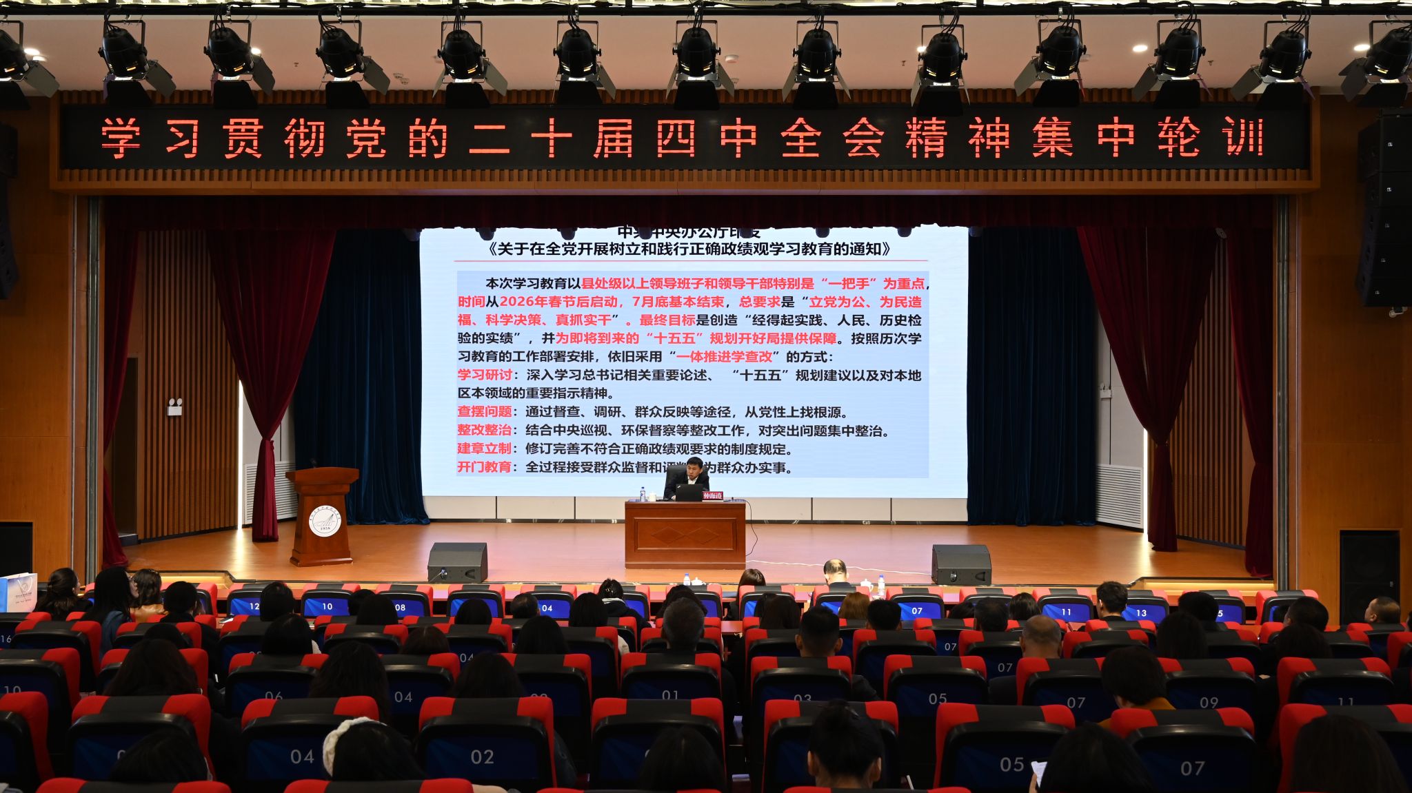 3月30日至4月2日,学校党委举办学习贯彻党的二十届四中全会精神集中轮训。本次轮训采取专家辅导、视频教学、分组研讨相结合的方式进行,旨在引导广大党员干部深学细悟党的二十届四中全会精神,牢固树立和践行正确政绩观,切实把思想和行动统一到党中央关于“十五五”时期发展的决策部署上来,以过硬作风推动学校高质量发展。