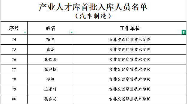 近日,吉林省人力资源和社会保障厅公布了首批产业人才库入库人员名单,学校高飞、战磊、崔秀虹、张井柱、李旭、王茉莉、孔春花、张宝成、盛繁、王乐10名教师成功入选。