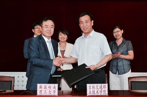 李镐成校长介绍了其校同新加坡等国的学校开展的合作项目的模式,并建议同我校的合作也增加这样的模式,认为我们两校近五年的合作交流内容很丰富,今后将在学分互认方面多做工作,建议两校互派教师培训、学生长短期交流、互派学者访学讲座,还希望与我校合作开发社区或继续教育培训项目,岭南理工大学将为两校的科研及合作项目提供资金,会继续积极推进两校合作,并邀请胡明校长等领导访问岭南理工大学,希望两校建立百年友好学校。我校胡明院长表示同意李校长的建议,我校会根据实际需要和两校的具体情况,进一步探讨与岭南理工大学在教师长期培训、学生短期交流及建立社区服务学校等方面的合作内容,从而不断提高教师的教学能力,拓宽师生视野。针对交流事项,两校达成了一些共识,并签署了“岭南理工大学与吉林交通职业技术学院在教育领域交流合作协议”。