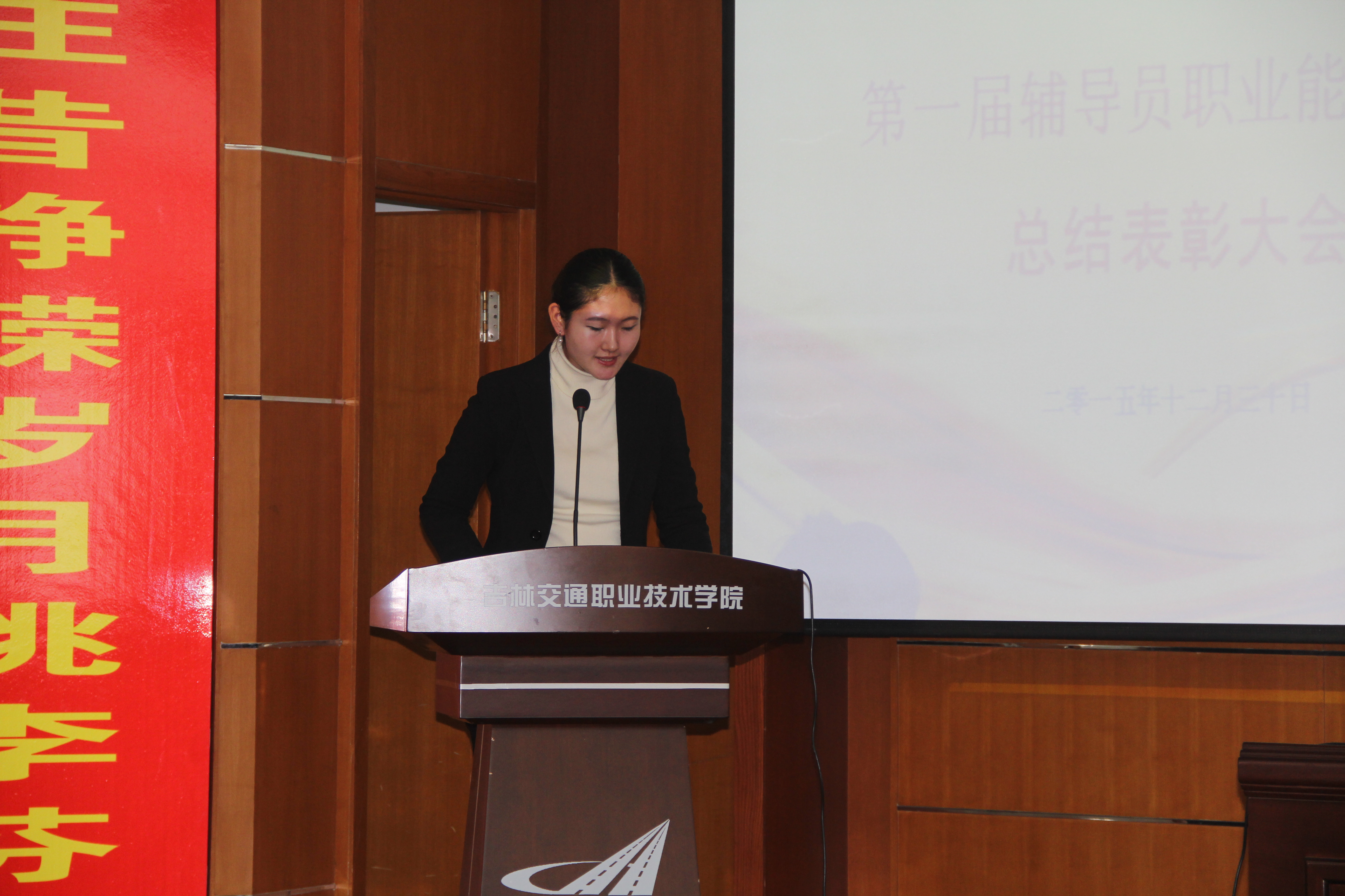 12月30日下午,我校在多功能厅举办了第一届辅导员能力大赛总结表彰大会。学校党委副书记李廷吉、校团委书记侯军、学生处副处长商建军、各学院党总支书记及部分行政部门领导与全体辅导员老师、各学院学生代表共同参加了此次大会。会议由学生处思政科科长李铁波主持。