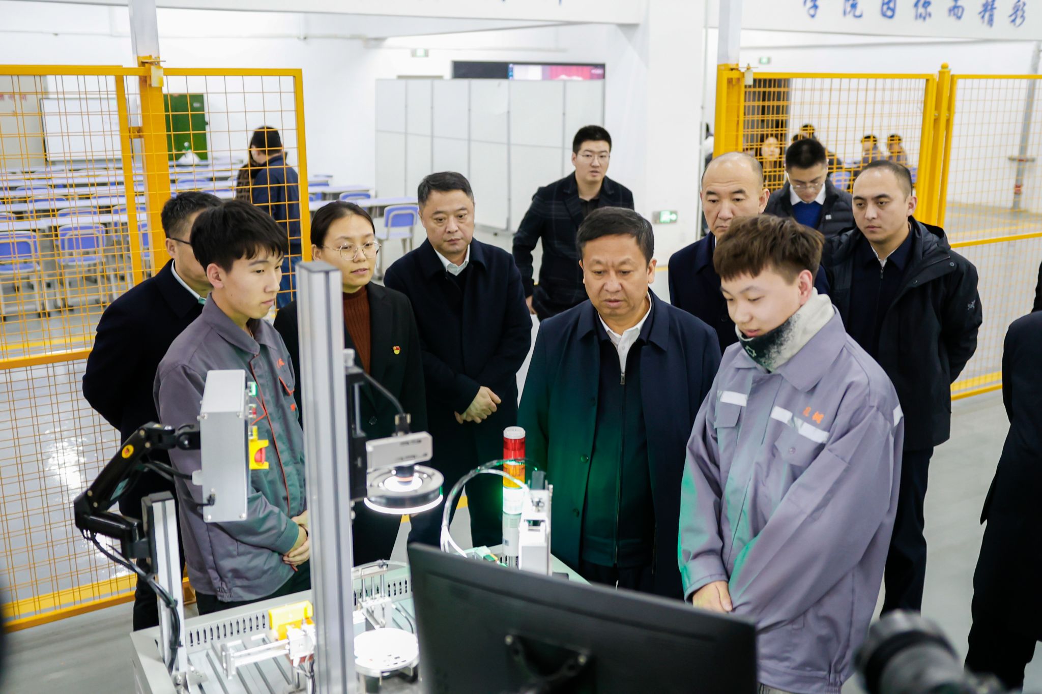 在机械工程学院校内实训基地,李国强观摩了智能四足仿生机器人、智能交通无人驾驶综合沙盘、机器视觉系统等实训,与学生现场交流,对实训基地的建设情况、学生的专业技术能力、就业率等方面给予了高度评价。