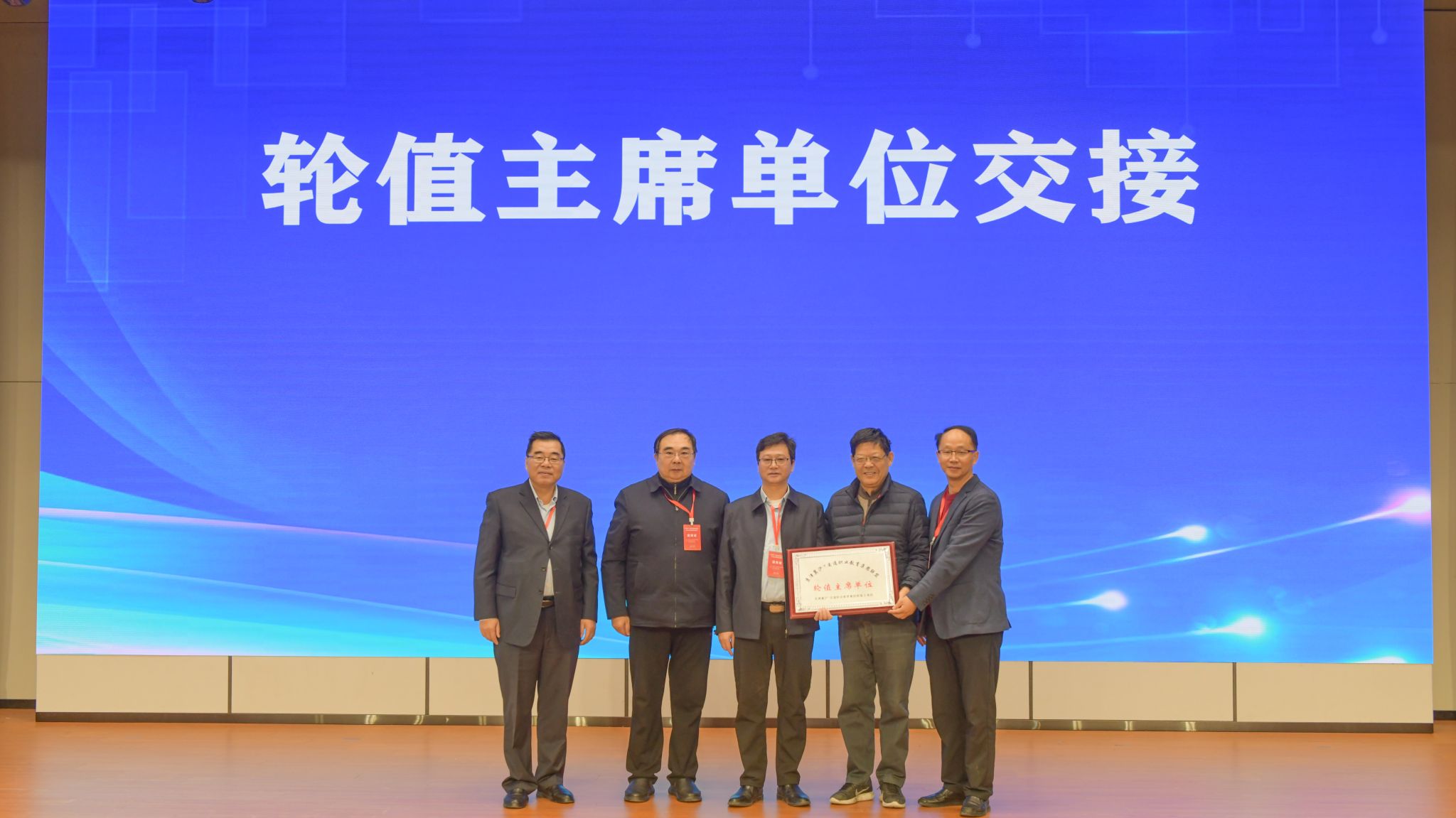 轮值主席单位交接仪式。2024年联盟轮值主席单位南京交通职业技术学院党委书记张毅把主席单位牌匾交还给中国交通教育研究会职教分会名誉理事长杨泽宇,由杨泽宇把主席单位牌匾授予2025年联盟轮值主席单位上海交通职业技术学院党委书记徐刚、上海交通物流职业教育集团专职副理事长徐辉和联合轮值主席单位广西交通职业技术学院党委副书记、院长李文勇。