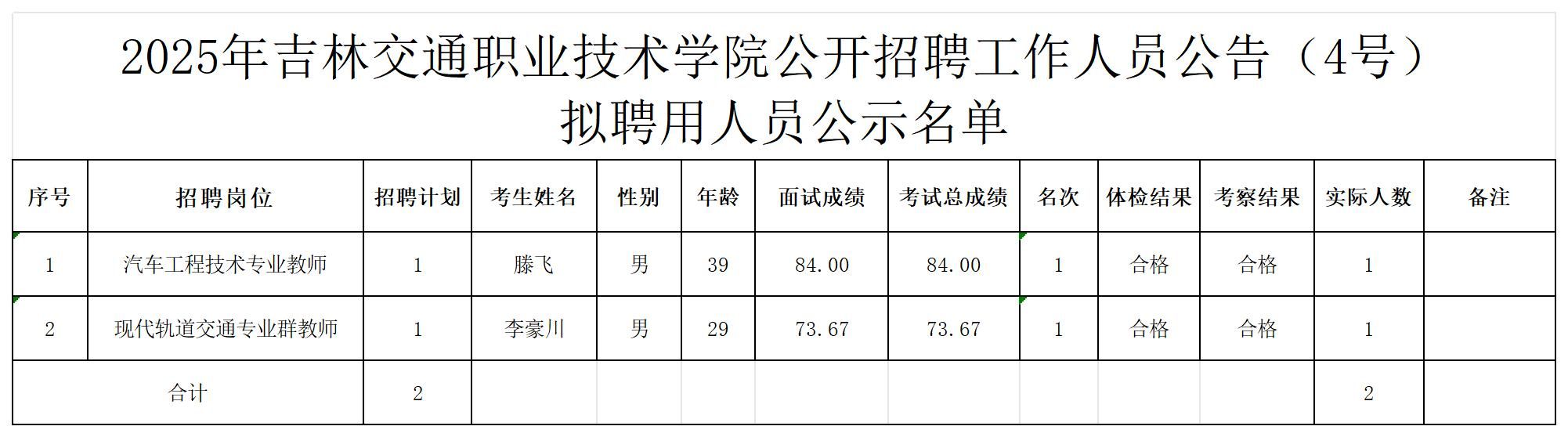 附件:2025年吉林交通职业技术学院公开招聘工作人员公告(4号)拟聘用人员公示名单